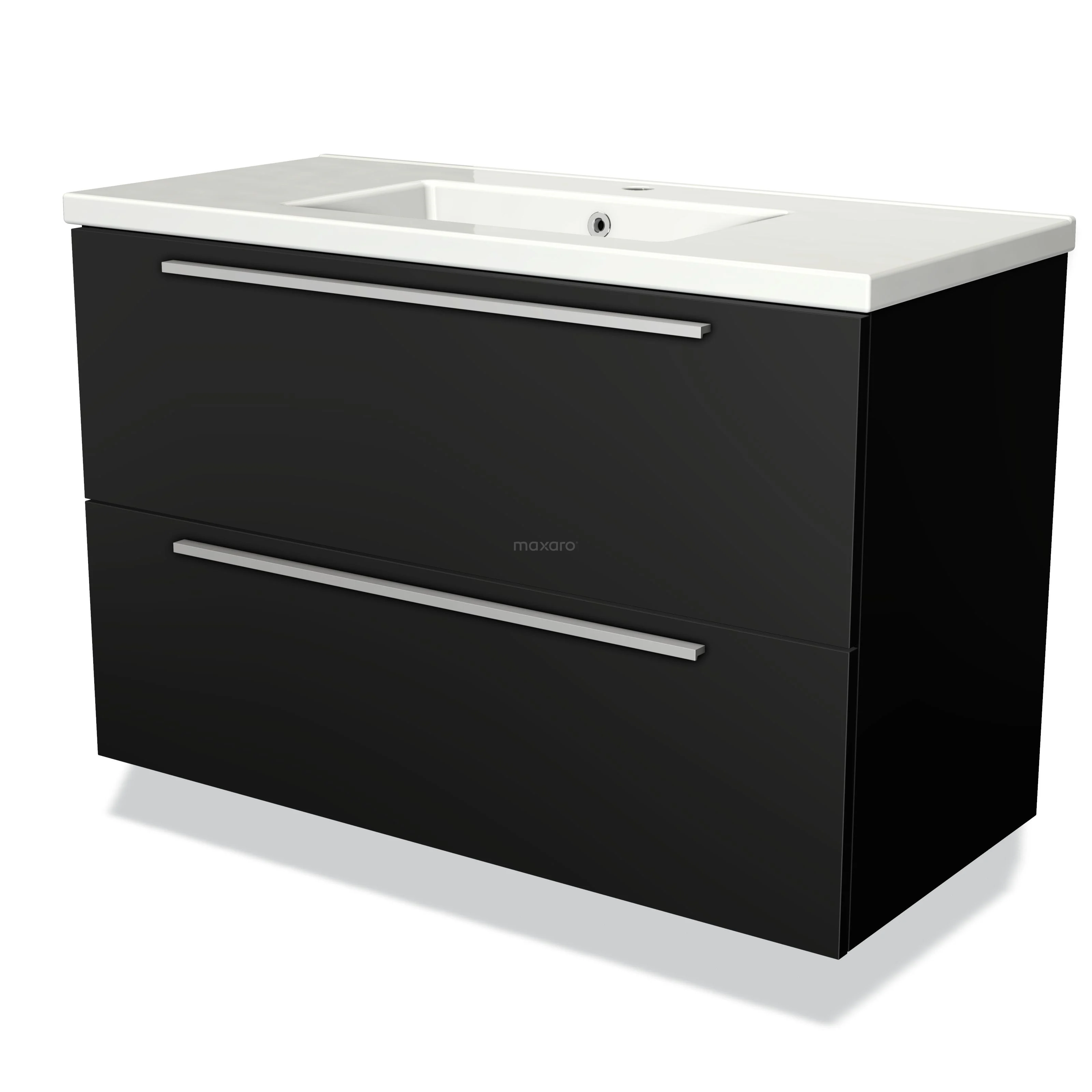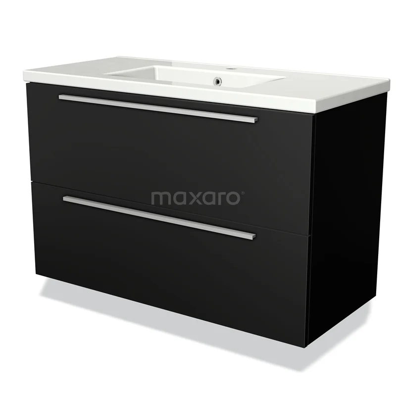 Modulo Bathroom furniture with sink | 100 cm Matte black Flat front Ceramic 2 Stacked drawers