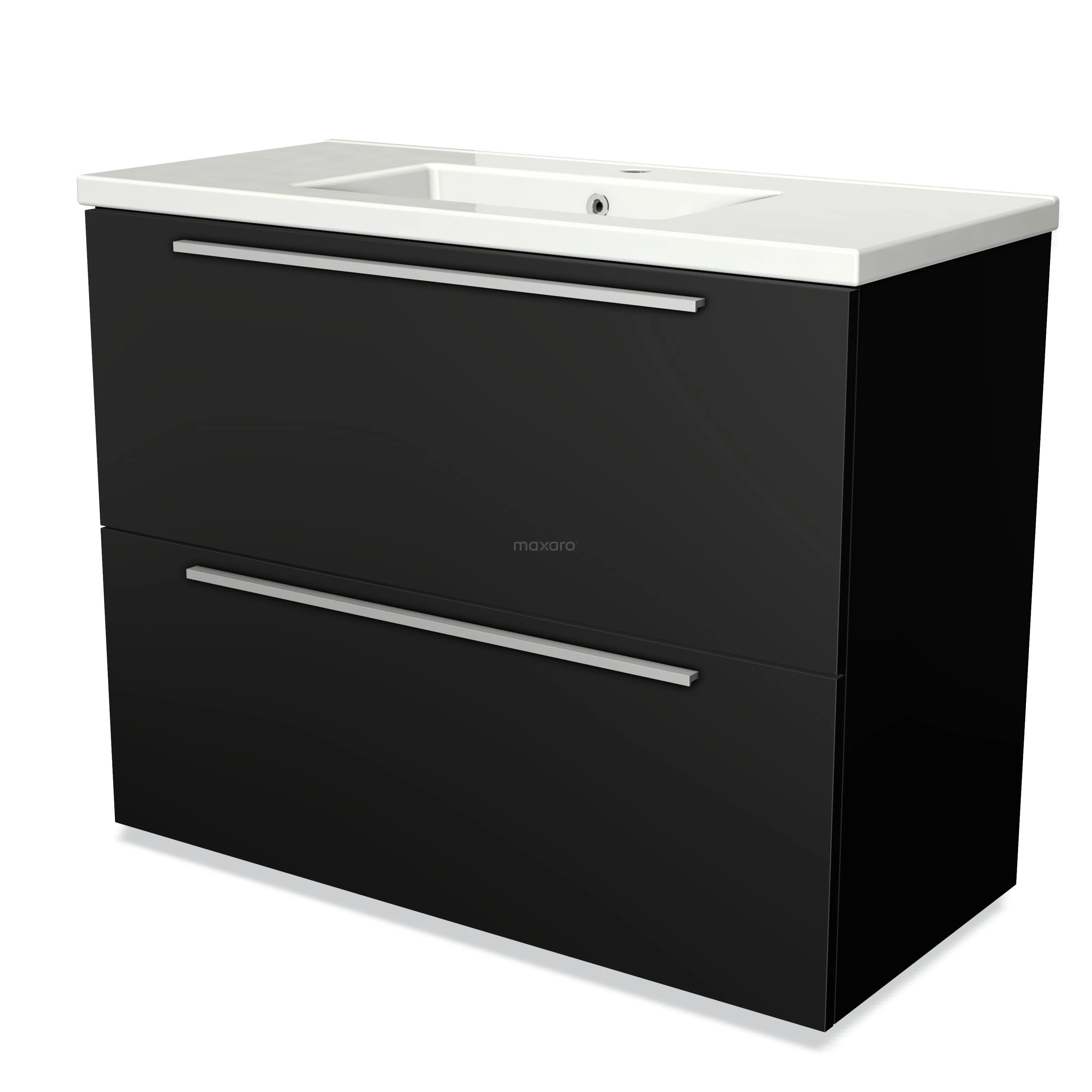 Modulo Bathroom furniture with sink | 100 cm Matte black Flat front Ceramic 2 stacked drawers under each other
