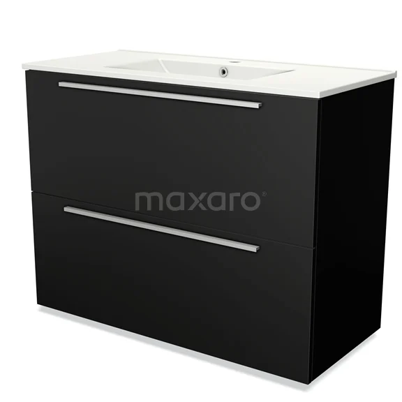 Modulo Bathroom furniture with sink | 100 cm Matte black Flat front Ceramic 2 stacked drawers under each other