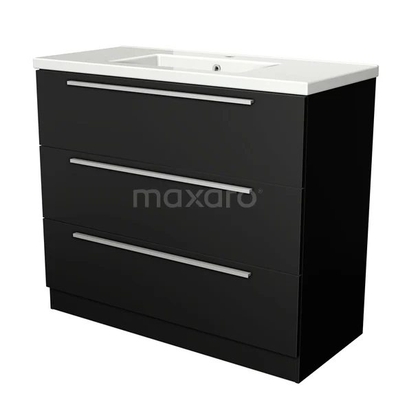 Modulo Bathroom furniture with sink | 100 cm Matte black Flat front Ceramic 3 standing drawers