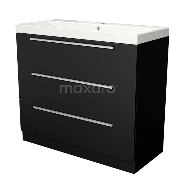 Modulo Bathroom furniture with sink | 100 cm Matte black Flat front Ceramic 3 standing drawers