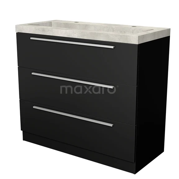 Modulo Bathroom furniture with sink | 100 cm Matte black Flat front Concrete 3 standing drawers