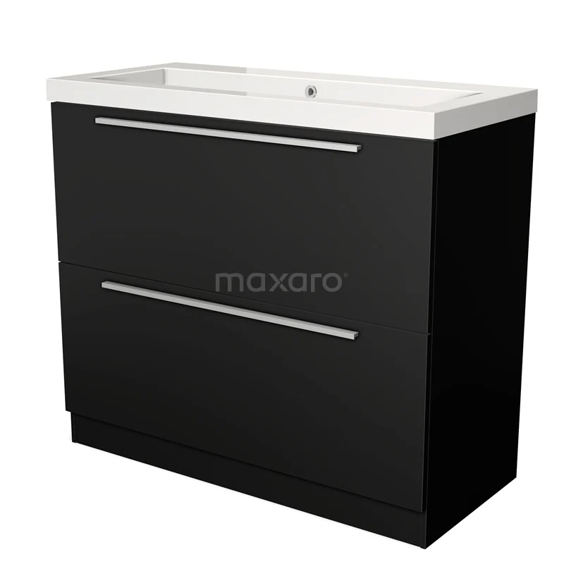 Modulo Bathroom furniture with sink | 100 cm Matte black Flat front Mineral marble 2 high drawers standing drawers under each other