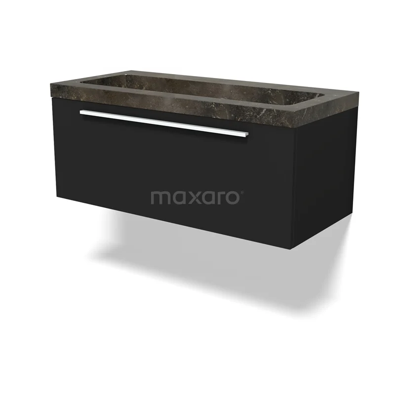 Modulo Bathroom furniture with sink | 100 cm Matte black Flat front Natural stone 1 drawer