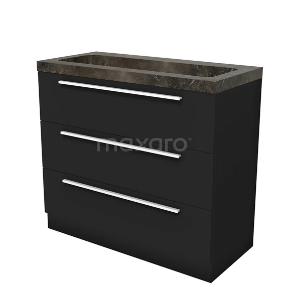 Modulo Bathroom furniture with sink | 100 cm Matte black Flat front Natural stone 3 standing drawers