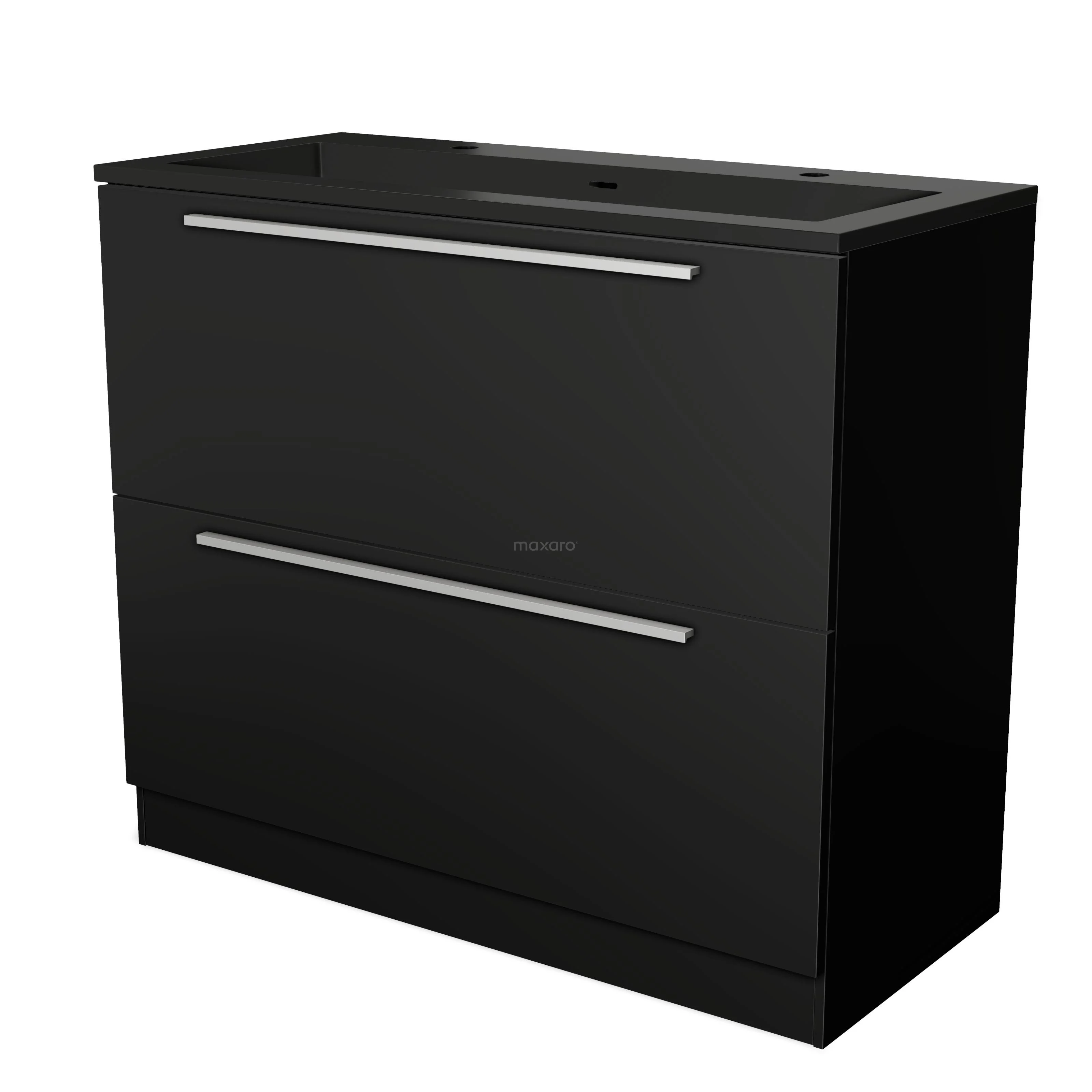 Modulo Bathroom furniture with sink | 100 cm Matte black Flat front Quartz 2 high drawers standing drawers under each other