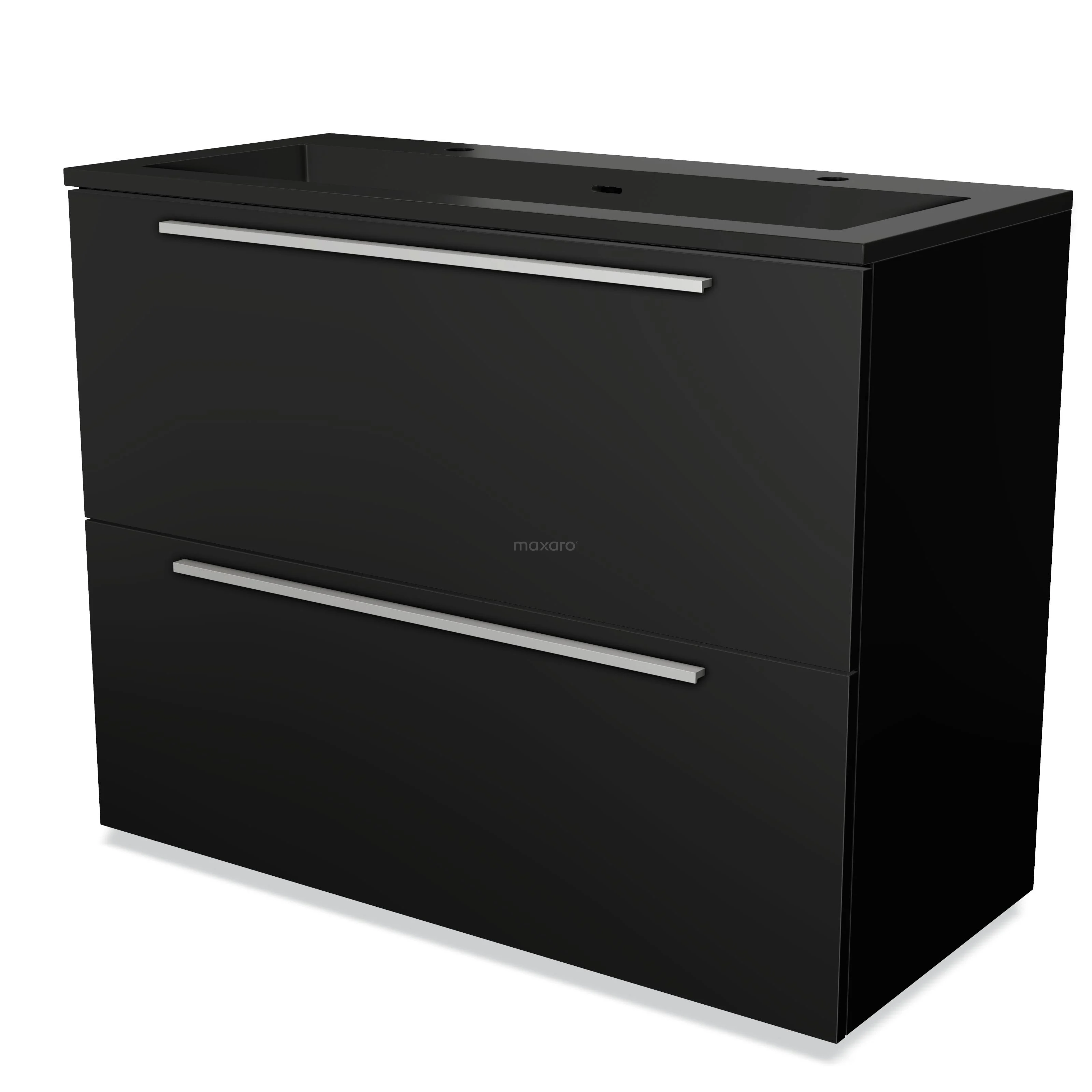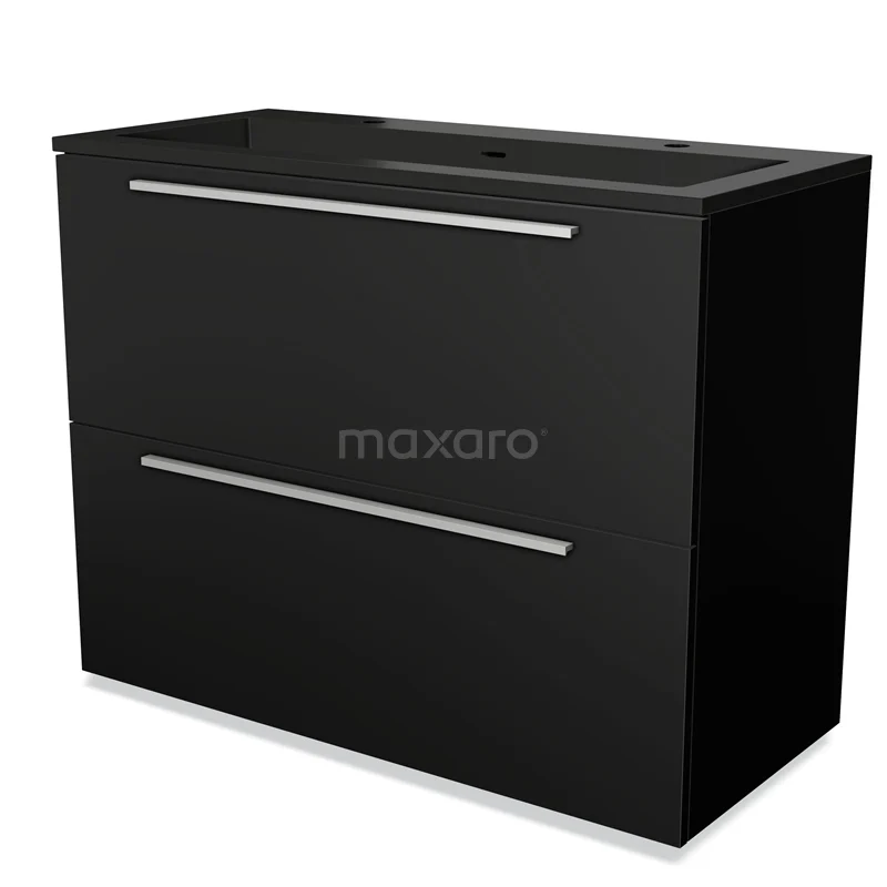 Modulo Bathroom furniture with sink | 100 cm Matte black Flat front Quartz 2 stacked drawers under each other