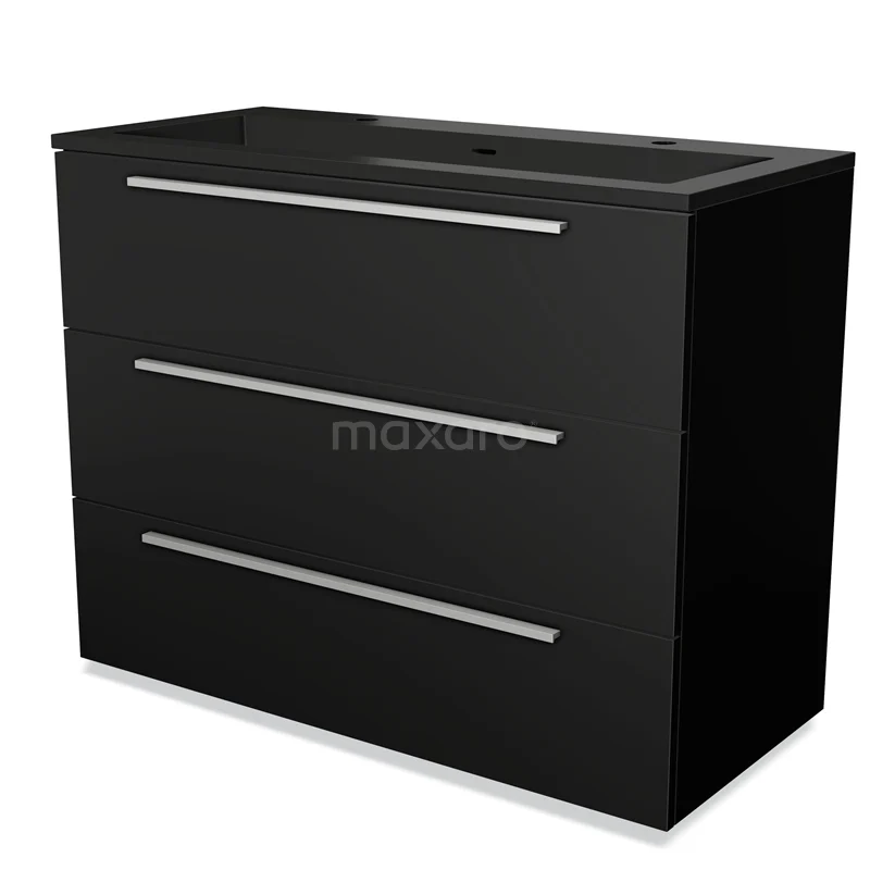 Modulo Bathroom furniture with sink | 100 cm Matte black Flat front Quartz 3 drawers