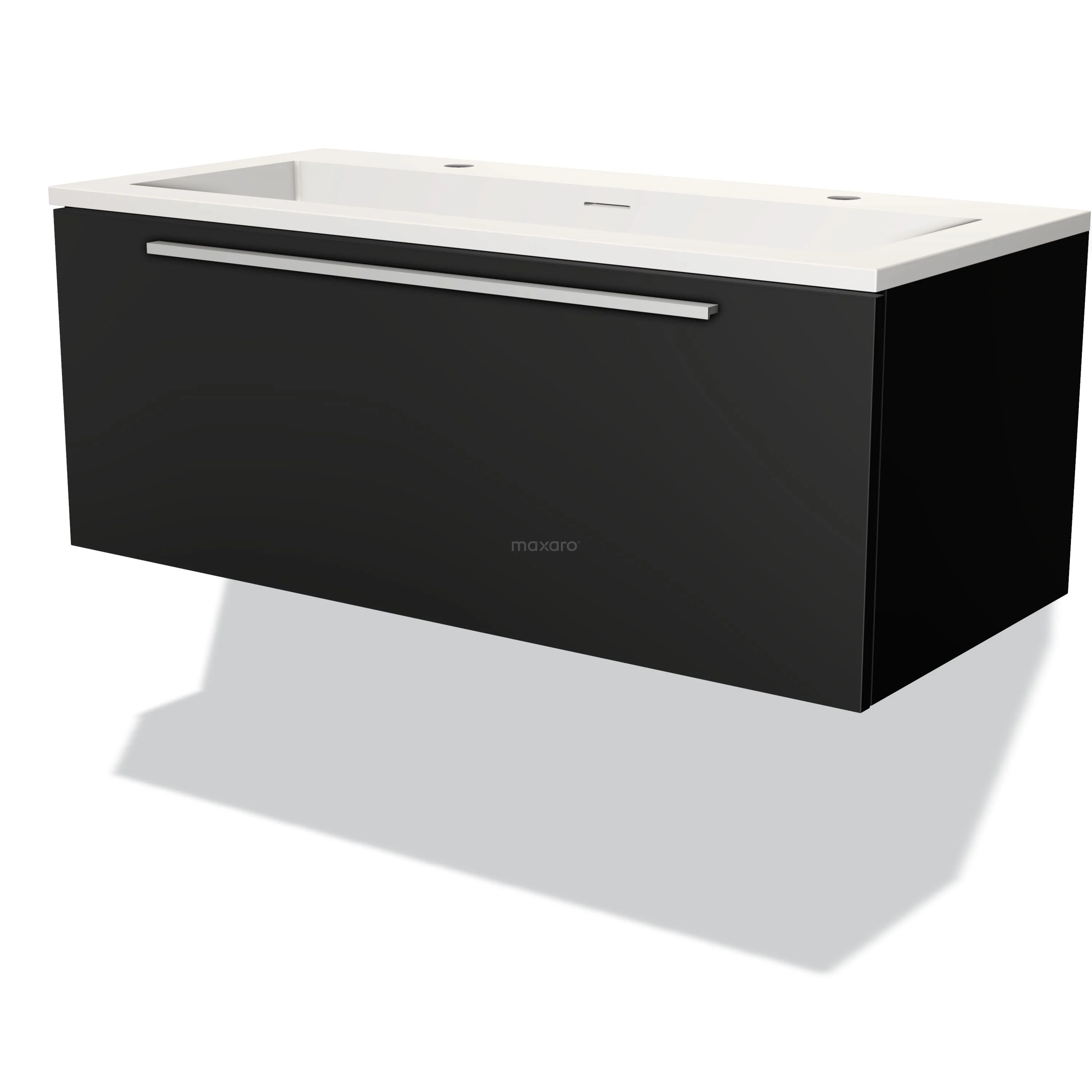 Modulo Bathroom furniture with sink | 100 cm Matte black Flat front Solid surface 1 drawer