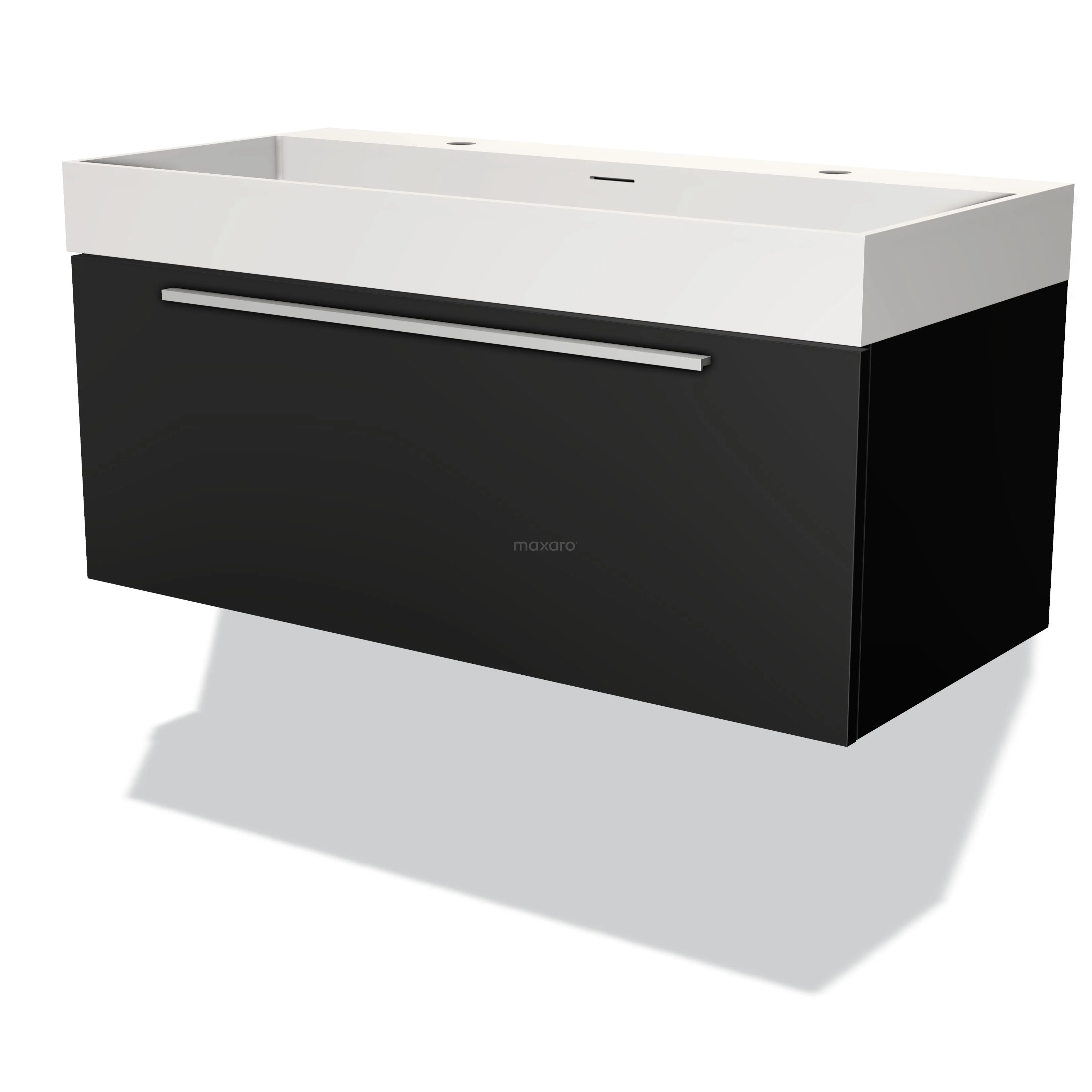 Modulo Bathroom furniture with sink | 100 cm Matte black Flat front Solid surface 1 drawer