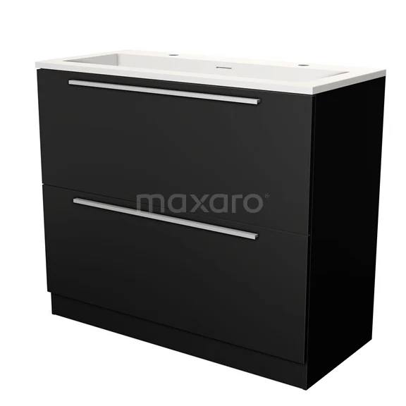 Modulo Bathroom furniture with sink | 100 cm Matte black Flat front Solid surface 2 high drawers standing drawers under each other