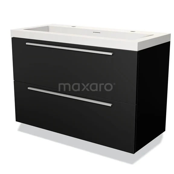 Modulo Bathroom furniture with sink | 100 cm Matte black Flat front Solid surface 2 Stacked drawers