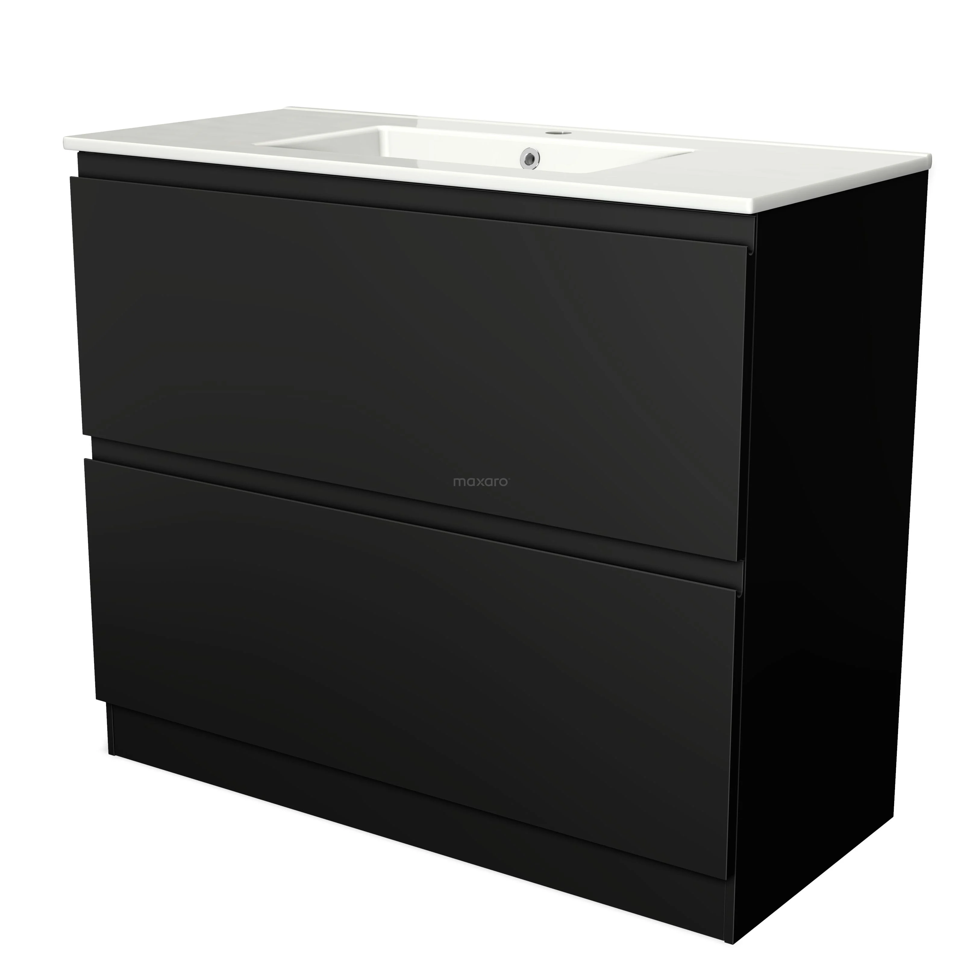Modulo Bathroom furniture with sink | 100 cm Matte black Handle-less front Ceramic 2 high drawers standing drawers under each other