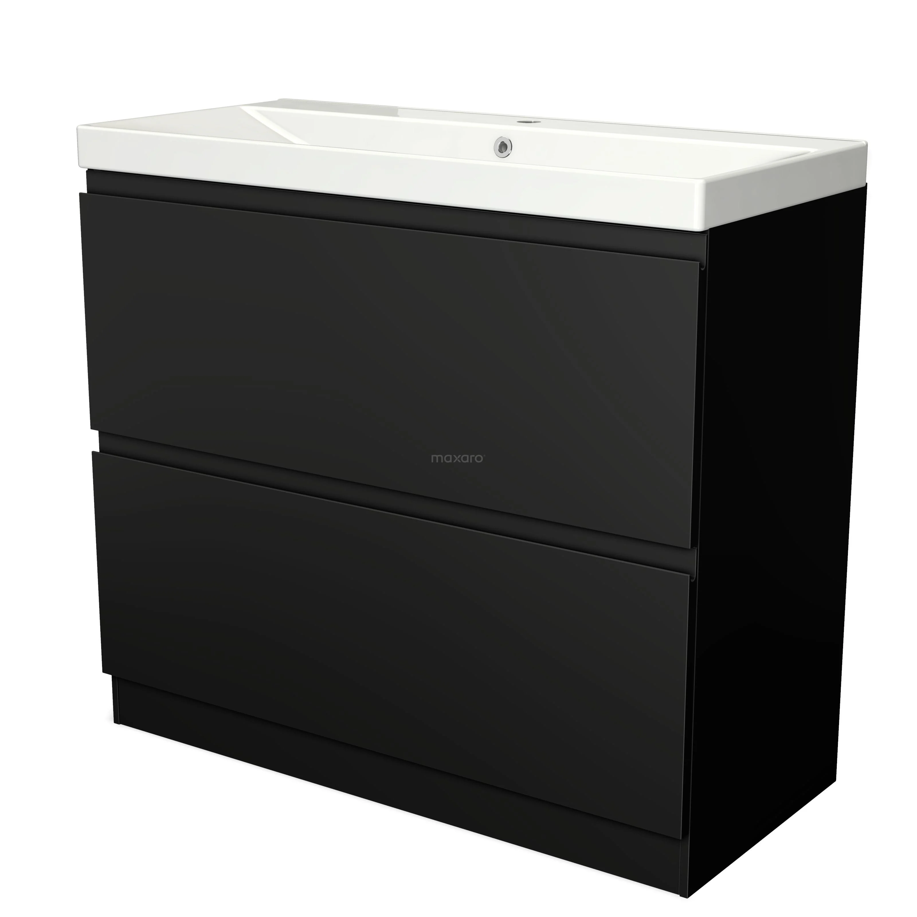 Modulo Bathroom furniture with sink | 100 cm Matte black Handle-less front Ceramic 2 high drawers standing drawers under each other