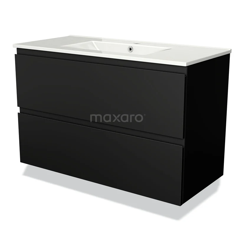 Modulo Bathroom furniture with sink | 100 cm Matte black Handle-less front Ceramic 2 Stacked drawers