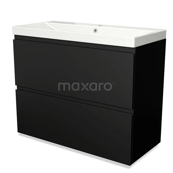 Modulo Bathroom furniture with sink | 100 cm Matte black Handle-less front Ceramic 2 stacked drawers under each other