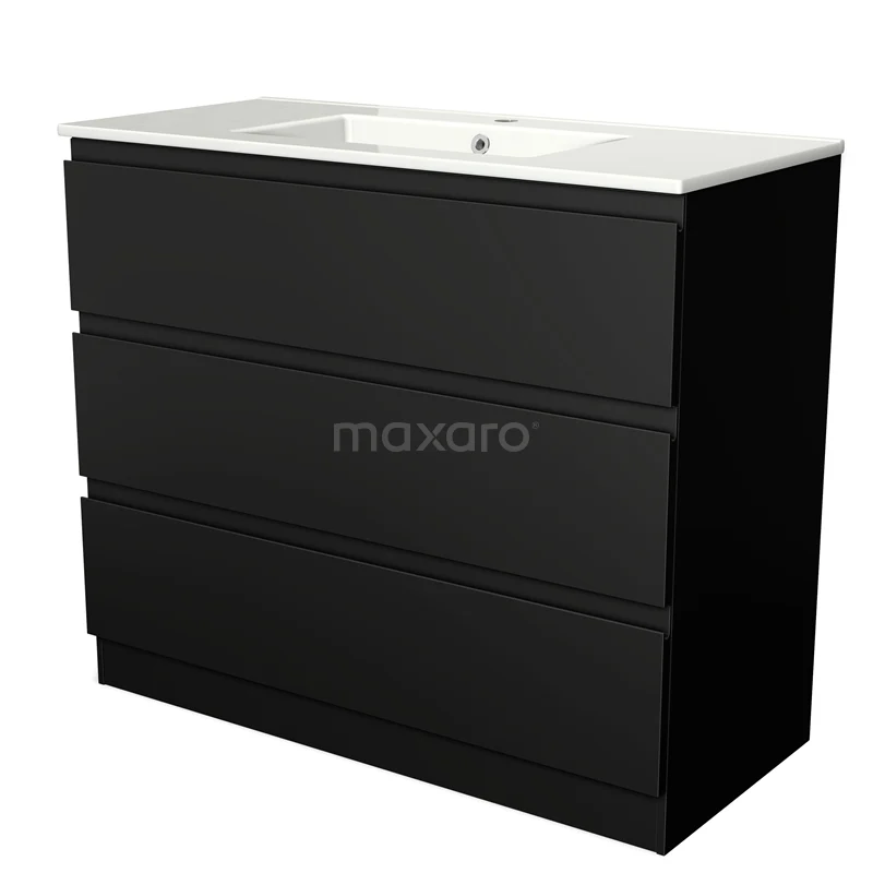 Modulo Bathroom furniture with sink | 100 cm Matte black Handle-less front Ceramic 3 standing drawers