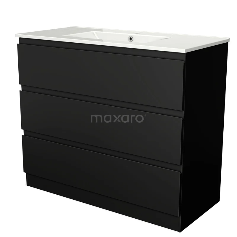 Modulo Bathroom furniture with sink | 100 cm Matte black Handle-less front Ceramic 3 standing drawers