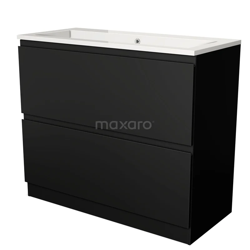 Modulo Bathroom furniture with sink | 100 cm Matte black Handle-less front Mineral marble 2 high drawers standing drawers under each other