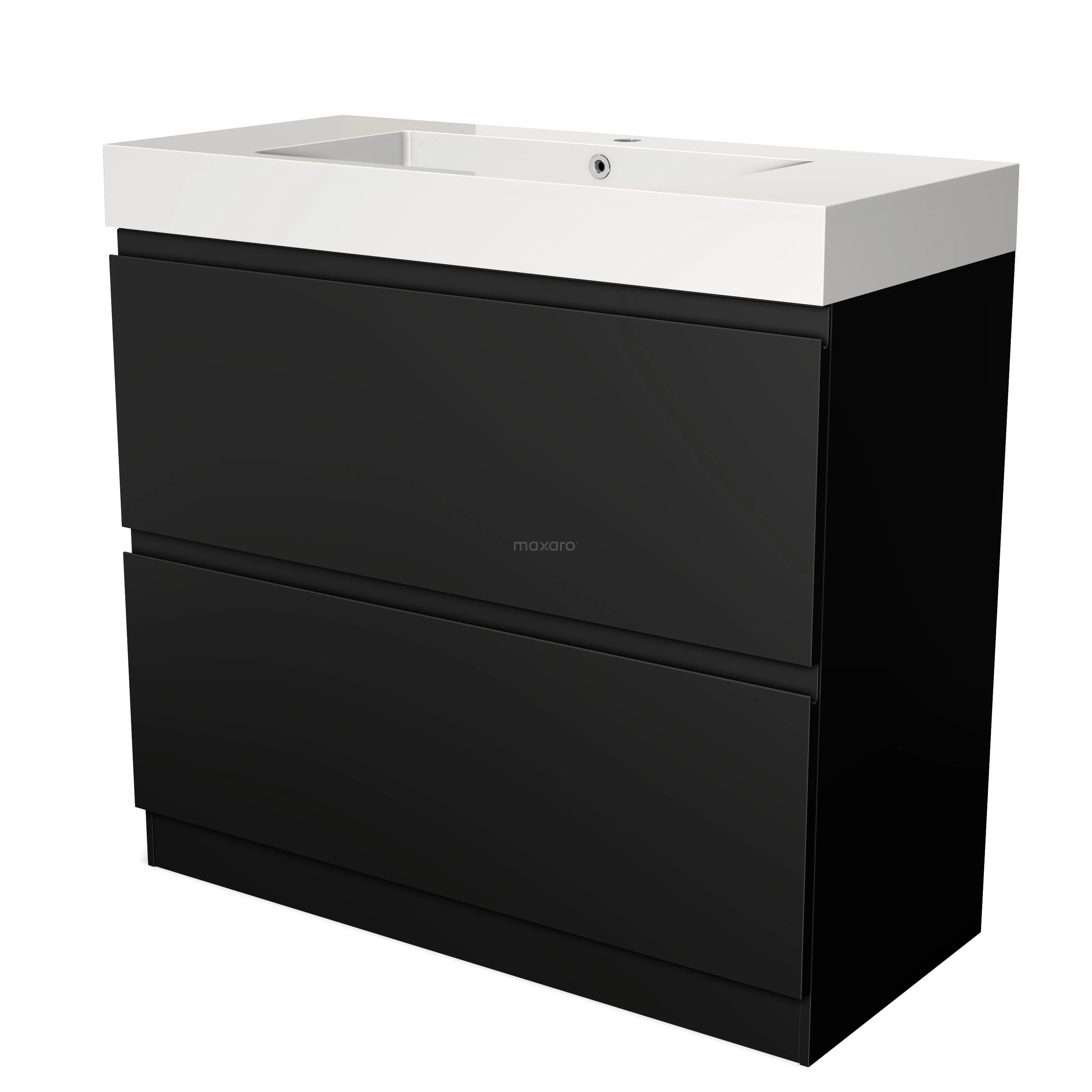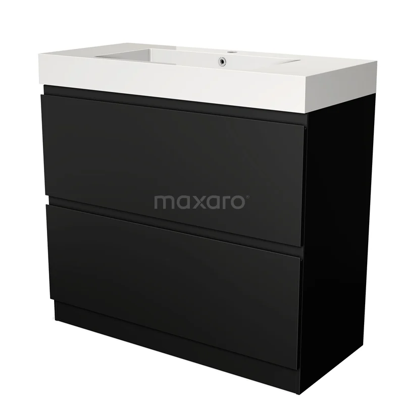 Modulo Bathroom furniture with sink | 100 cm Matte black Handle-less front Mineral marble 2 high drawers standing drawers under each other