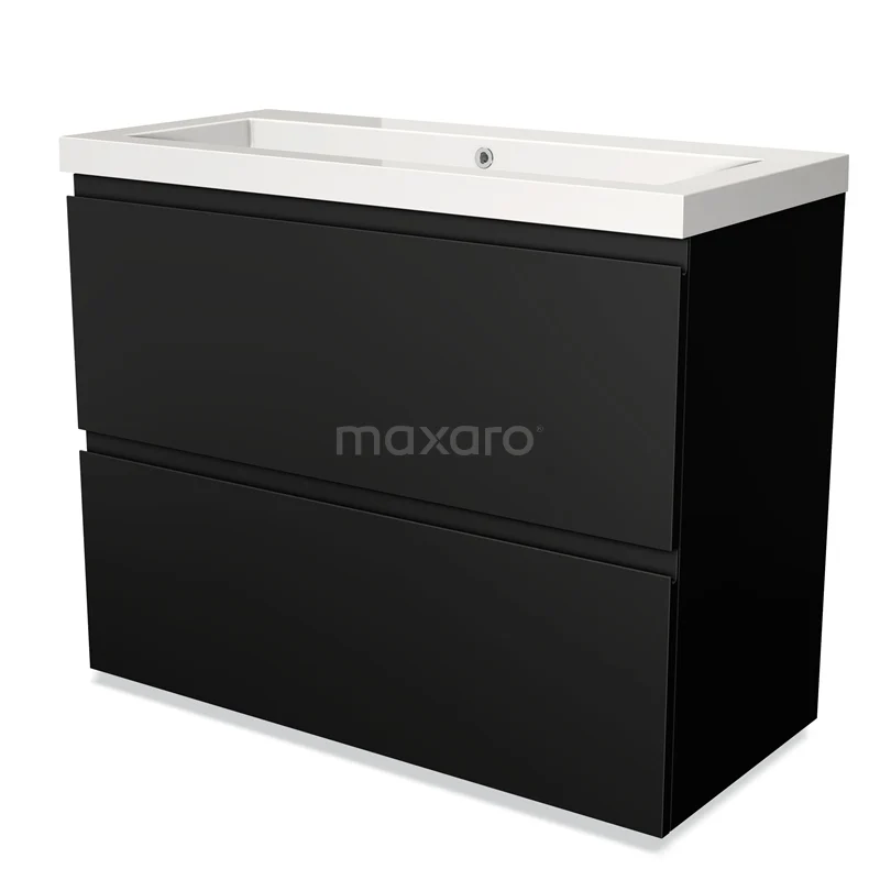 Modulo Bathroom furniture with sink | 100 cm Matte black Handle-less front Mineral marble 2 stacked drawers under each other