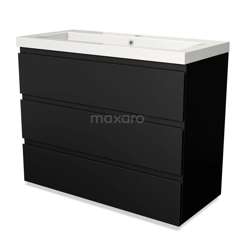 Modulo Bathroom furniture with sink | 100 cm Matte black Handle-less front Mineral marble 3 drawers