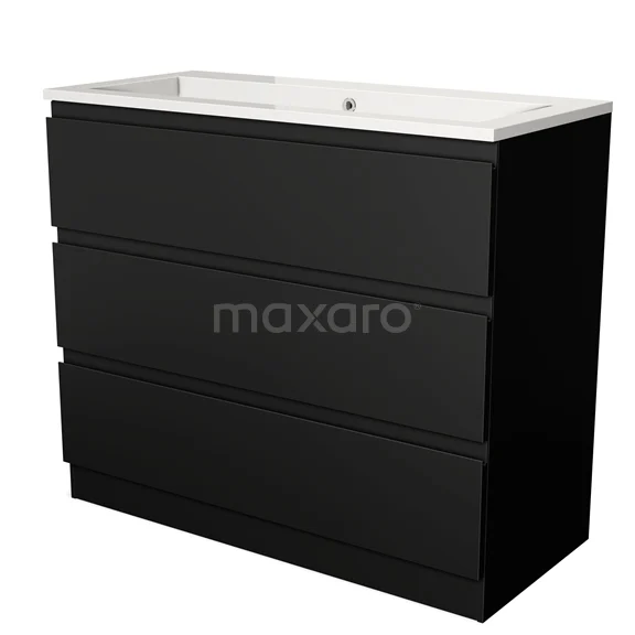 Modulo Bathroom furniture with sink | 100 cm Matte black Handle-less front Mineral marble 3 standing drawers