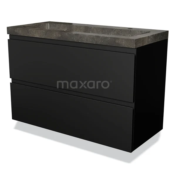 Modulo Bathroom furniture with sink | 100 cm Matte black Handle-less front Natural stone 2 Stacked drawers