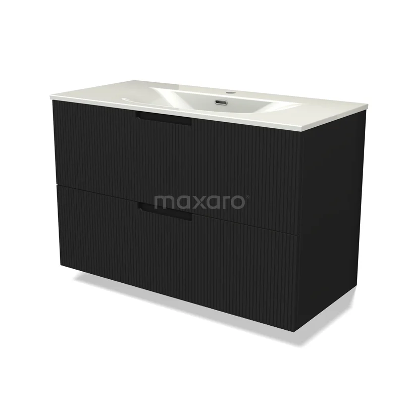 Modulo Bathroom furniture with sink | 100 cm Matte black Line front Ceramic 2 Stacked drawers
