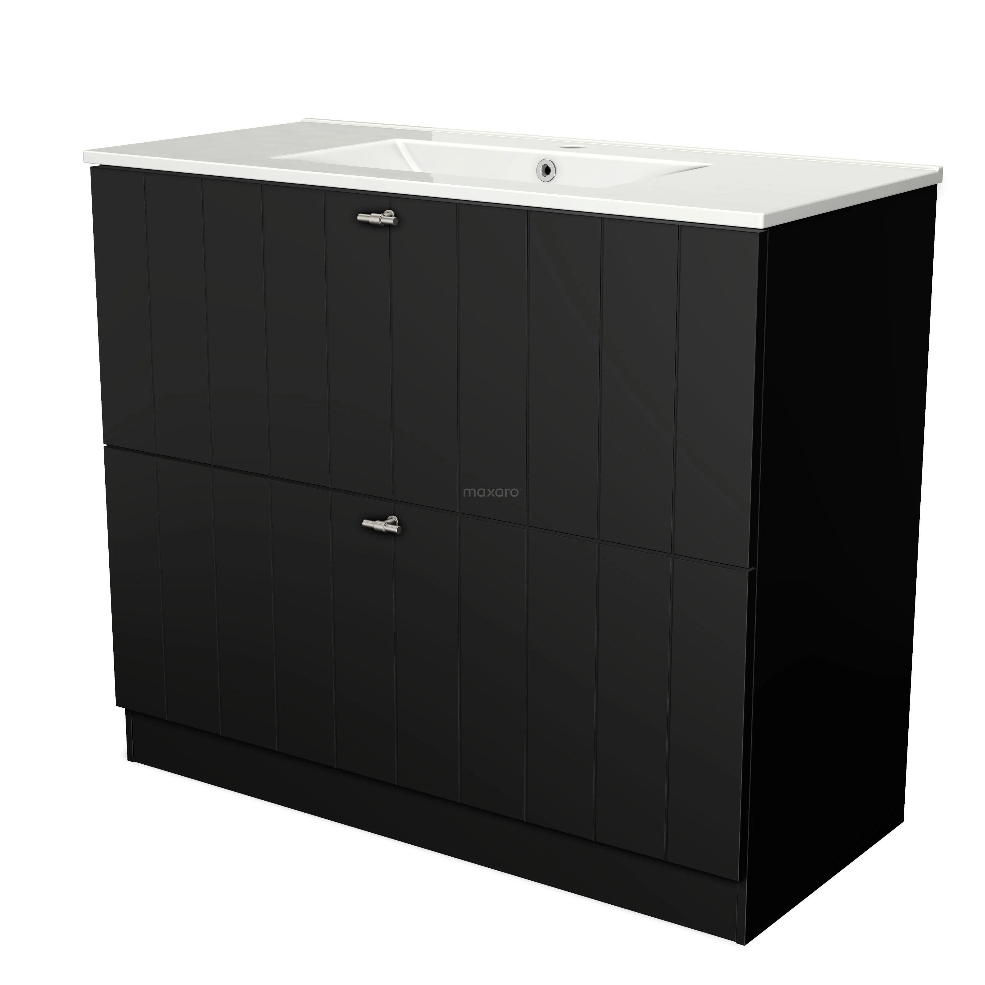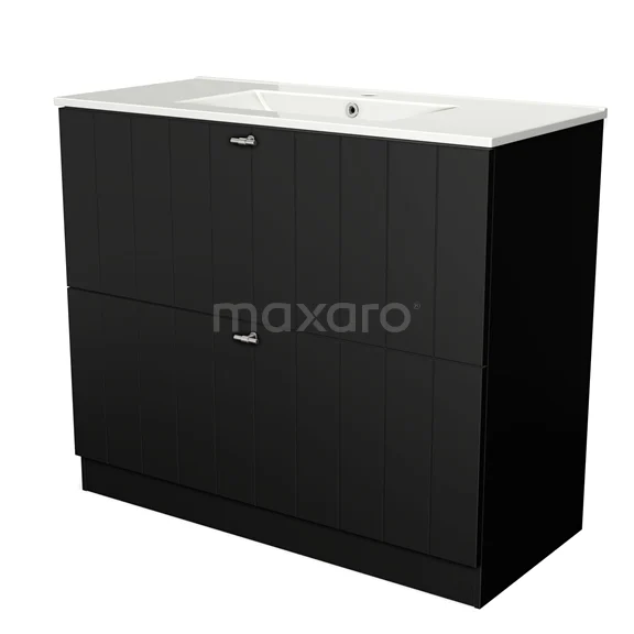 Modulo Bathroom furniture with sink | 100 cm Matte black Slat front Ceramic 2 high drawers standing drawers under each other