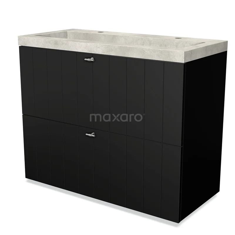 Modulo Bathroom furniture with sink | 100 cm Matte black Slat front Concrete 2 stacked drawers under each other