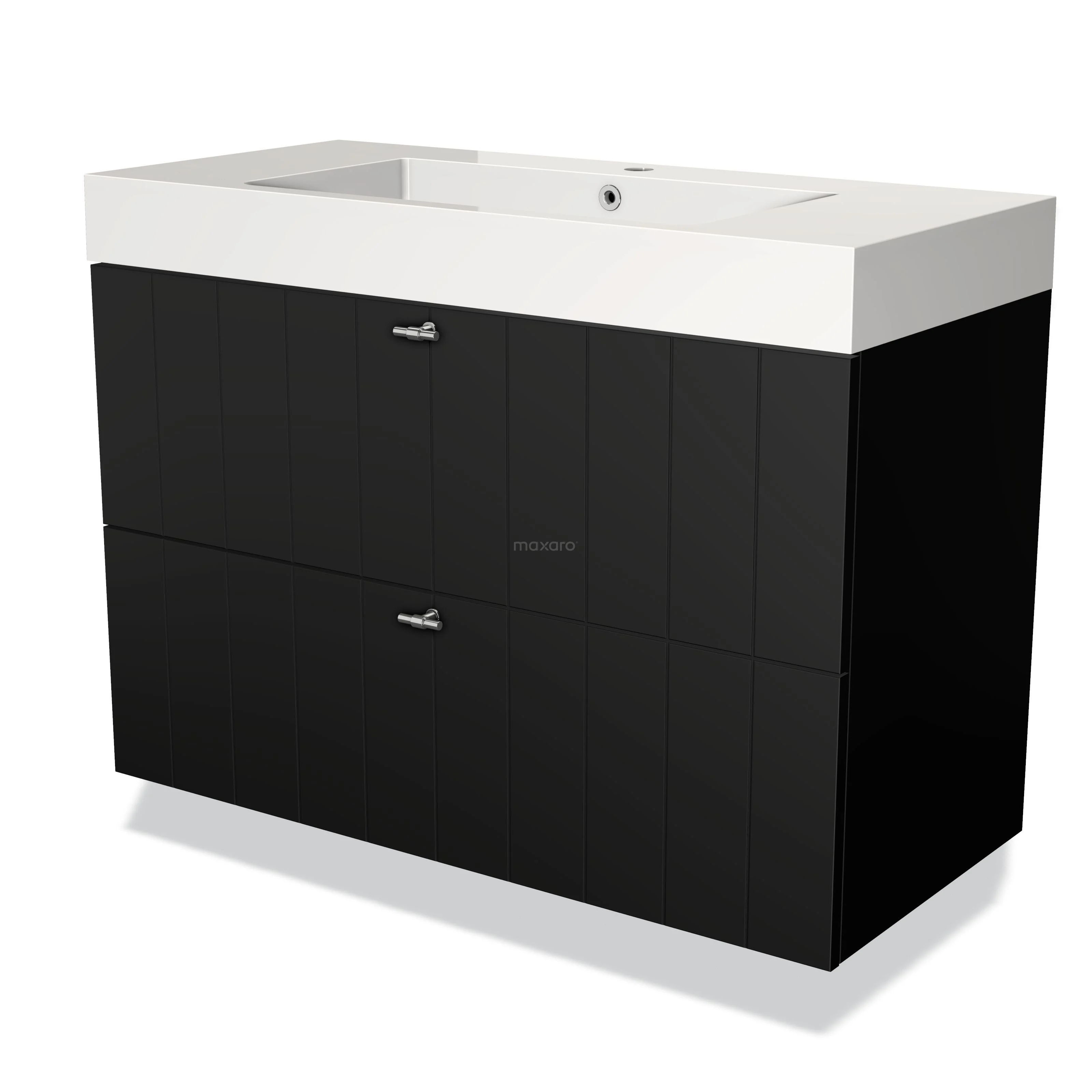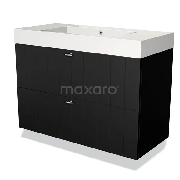Modulo Bathroom furniture with sink | 100 cm Matte black Slat front Mineral marble 2 Stacked drawers