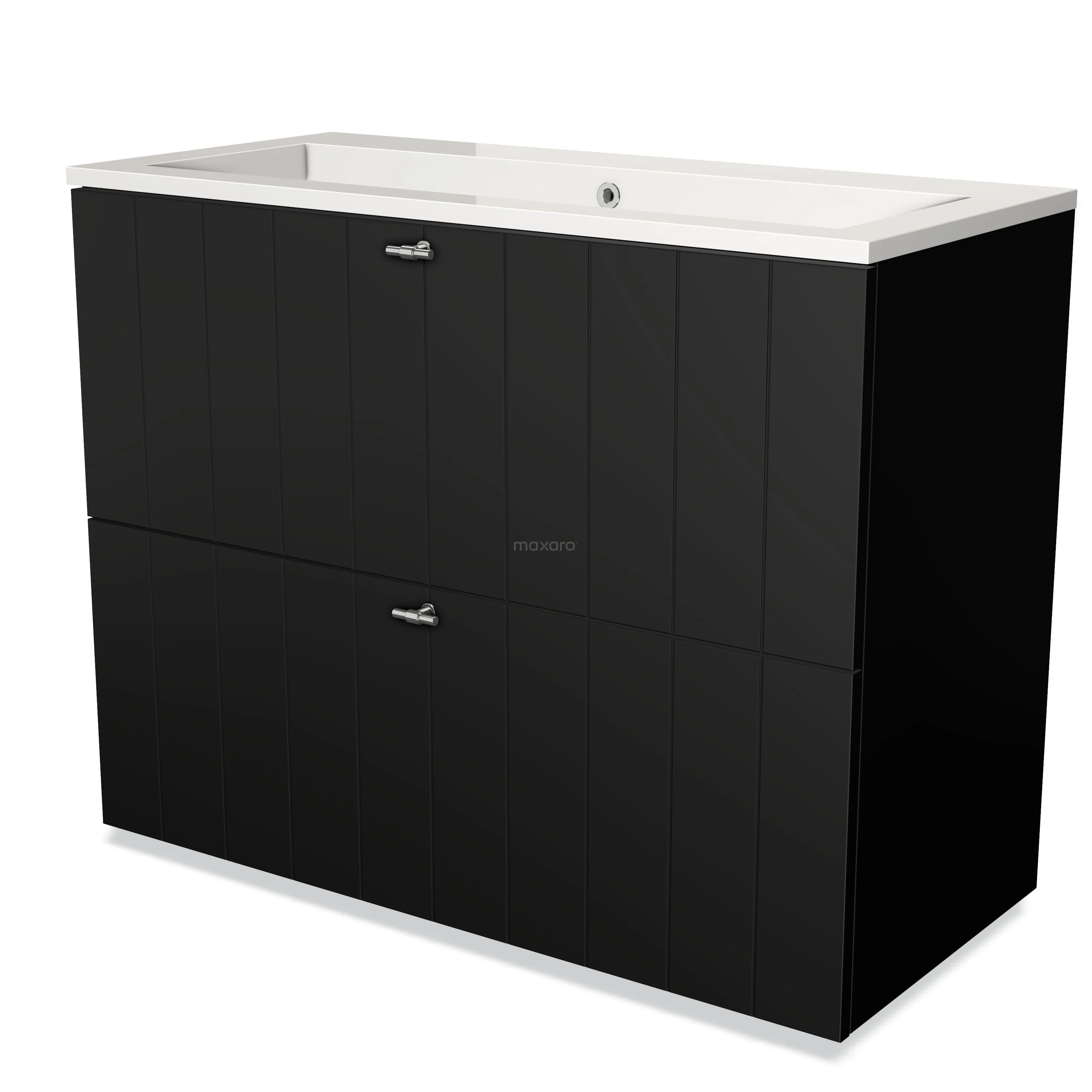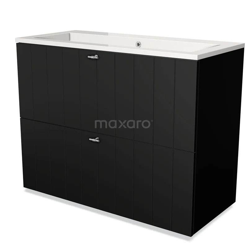 Modulo Bathroom furniture with sink | 100 cm Matte black Slat front Mineral marble 2 stacked drawers under each other