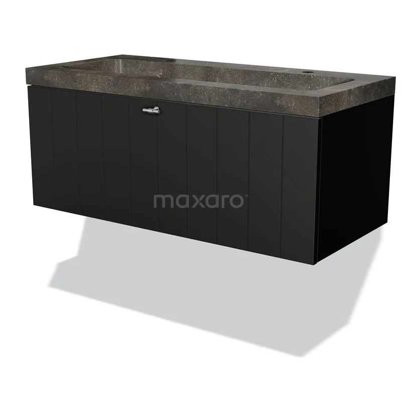 Modulo Bathroom furniture with sink | 100 cm Matte black Slat front Natural stone 1 drawer