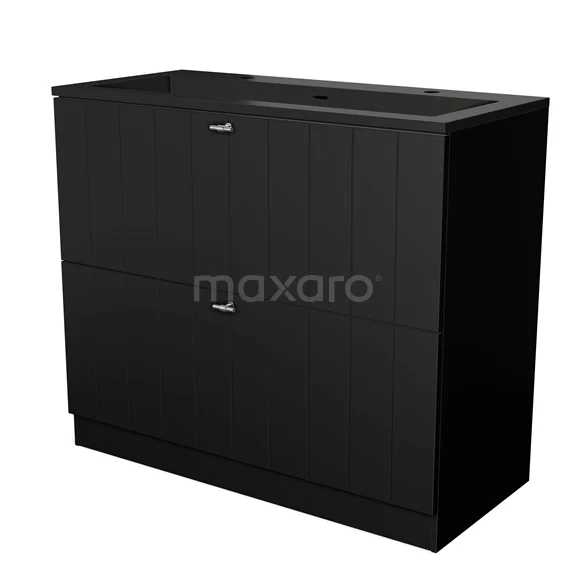 Modulo Bathroom furniture with sink | 100 cm Matte black Slat front Quartz 2 high drawers standing drawers under each other