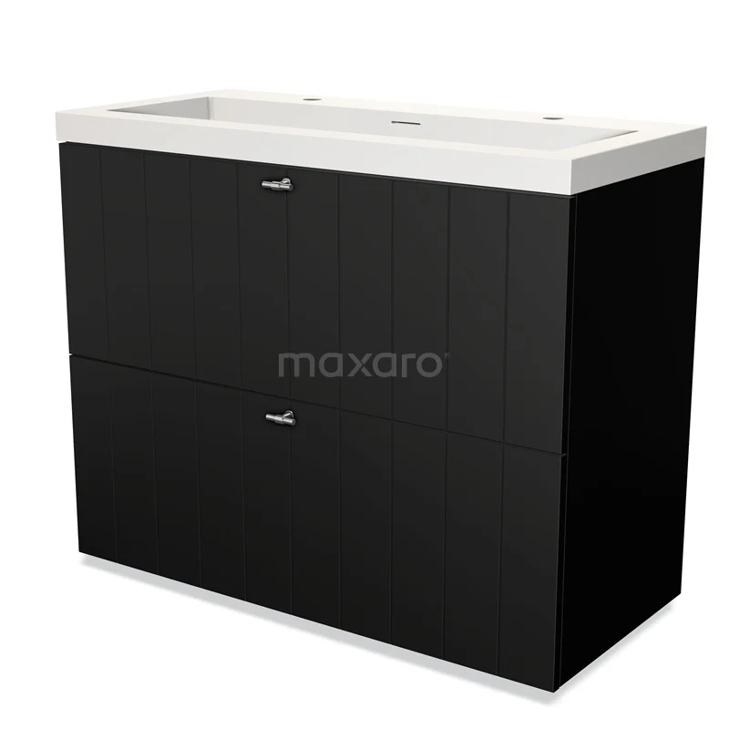 Modulo Bathroom furniture with sink | 100 cm Matte black Slat front Solid surface 2 stacked drawers under each other