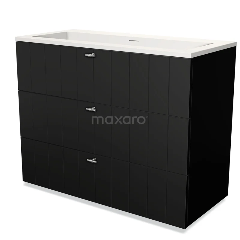 Modulo Bathroom furniture with sink | 100 cm Matte black Slat front Solid surface 3 drawers