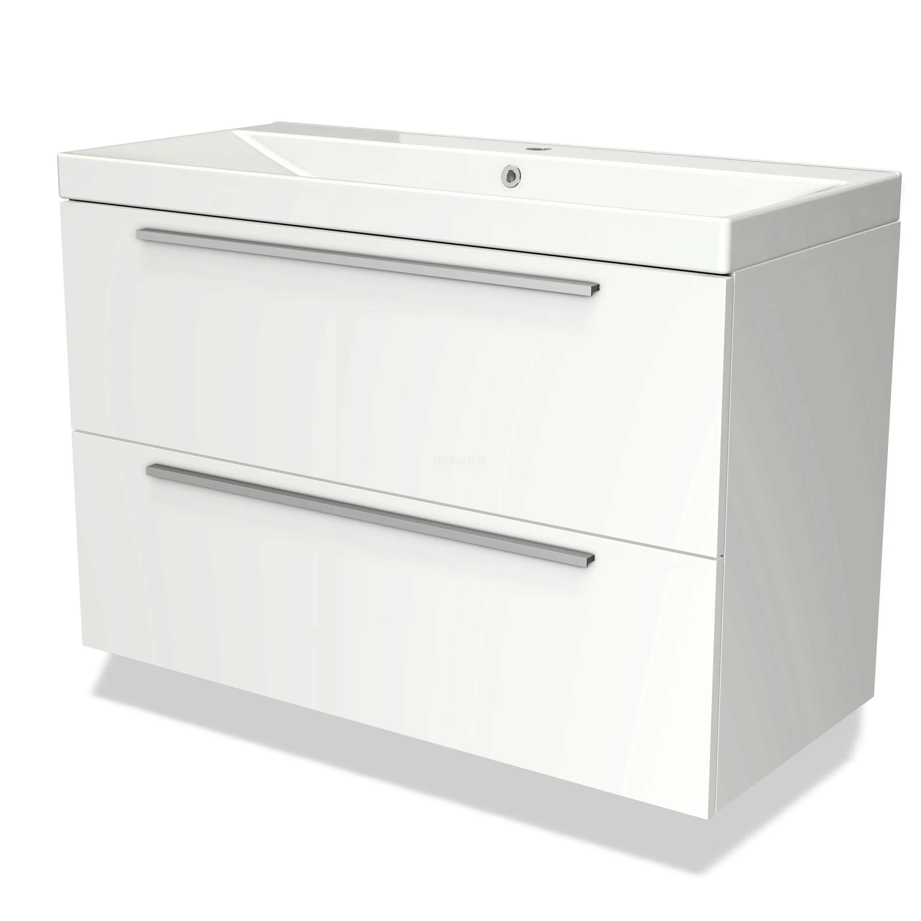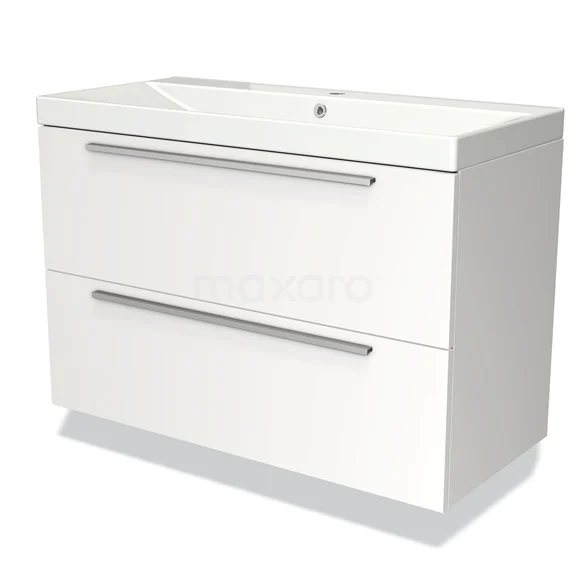 Modulo Bathroom furniture with sink | 100 cm Matte white Flat front Ceramic 2 Stacked drawers