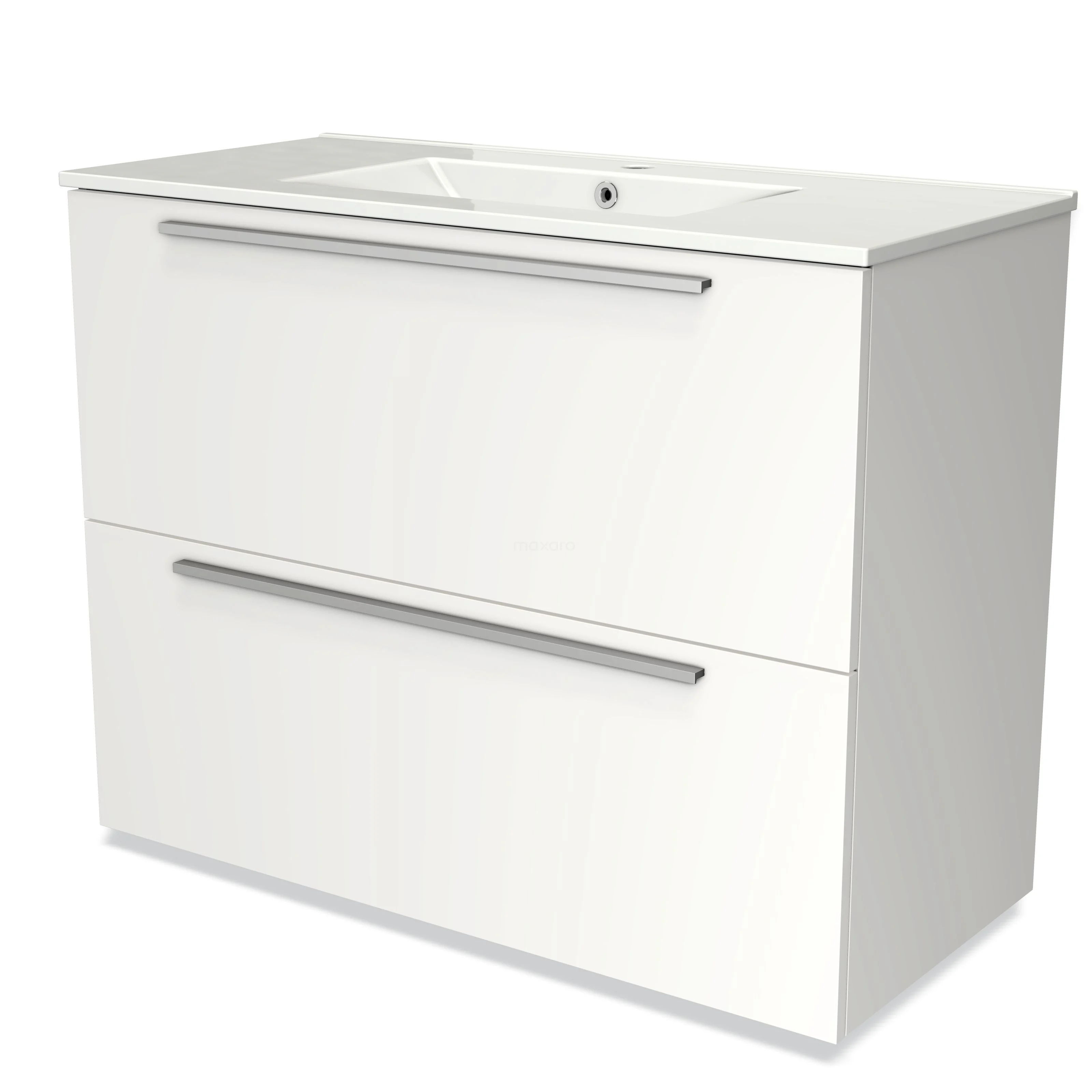 Modulo Bathroom furniture with sink | 100 cm Matte white Flat front Ceramic 2 stacked drawers under each other