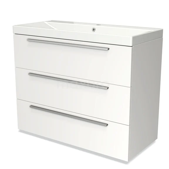 Modulo Bathroom furniture with sink | 100 cm Matte white Flat front Ceramic 3 drawers