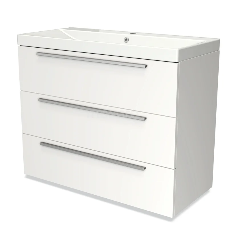 Undercabinet with spacious drawers The base cabinet is equipped with 3 drawers, providing space for all your bathroom utensils. Thanks to the soft open and close system, the drawers open and close silently. Moreover, they are extra high and fully extendable. Furthermore, the unit has a smart siphon cut-out. This allows you to make optimal use of the available space.