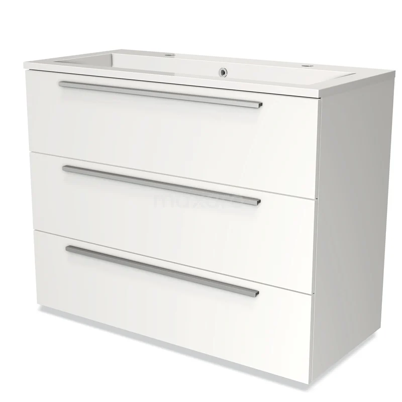 Modulo Bathroom furniture with sink | 100 cm Matte white Flat front Mineral marble 3 drawers