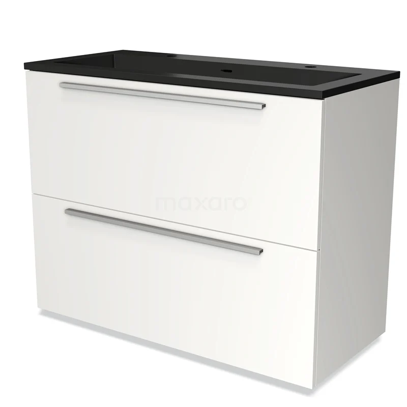 Modulo Bathroom furniture with sink | 100 cm Matte white Flat front Quartz 2 stacked drawers under each other
