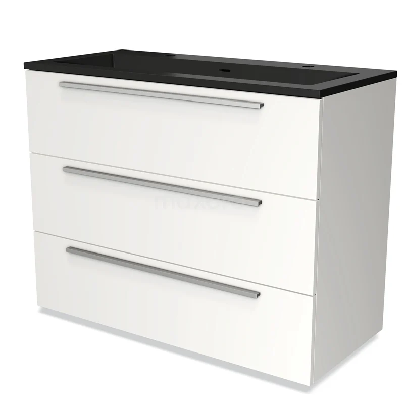 Modulo Bathroom furniture with sink | 100 cm Matte white Flat front Quartz 3 drawers