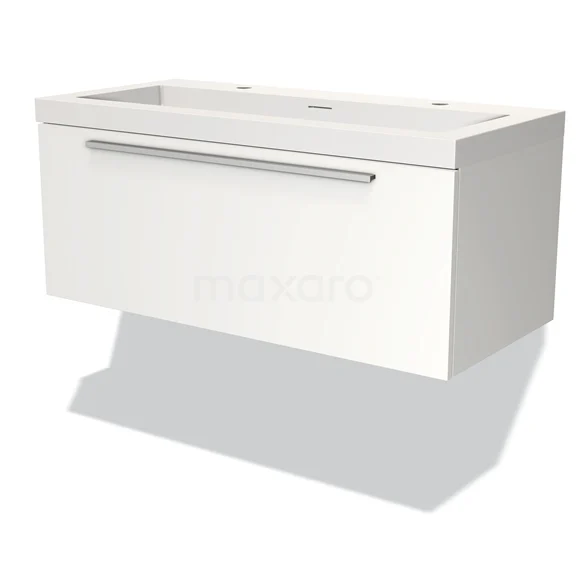 Modulo Bathroom furniture with sink | 100 cm Matte white Flat front Solid surface 1 drawer