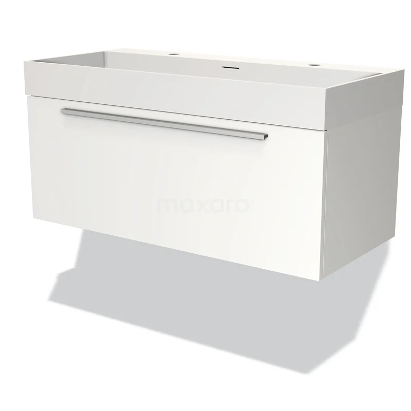 Modulo Bathroom furniture with sink | 100 cm Matte white Flat front Solid surface 1 drawer
