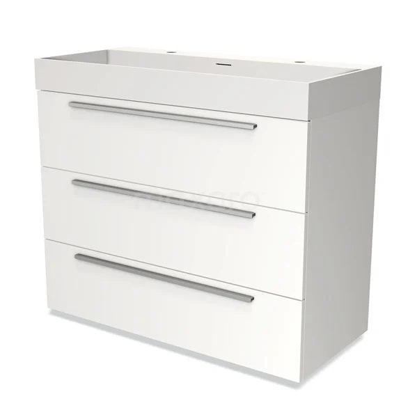 Modulo Bathroom furniture with sink | 100 cm Matte white Flat front Solid surface 3 drawers