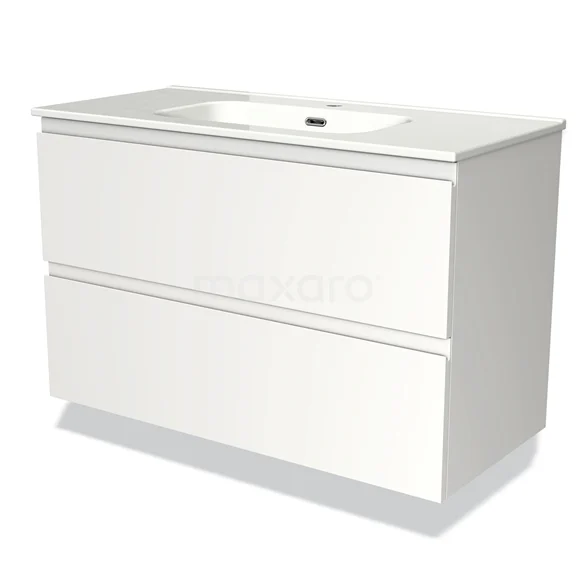 Modulo Bathroom furniture with sink | 100 cm Matte white Handle-less front Ceramic 2 Stacked drawers