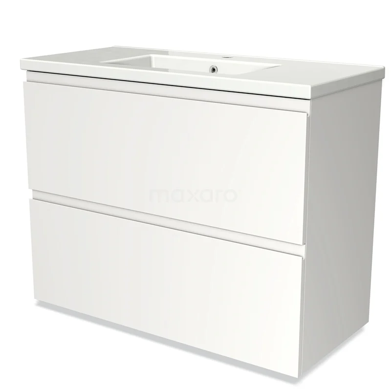 Modulo Bathroom furniture with sink | 100 cm Matte white Handle-less front Ceramic 2 stacked drawers under each other