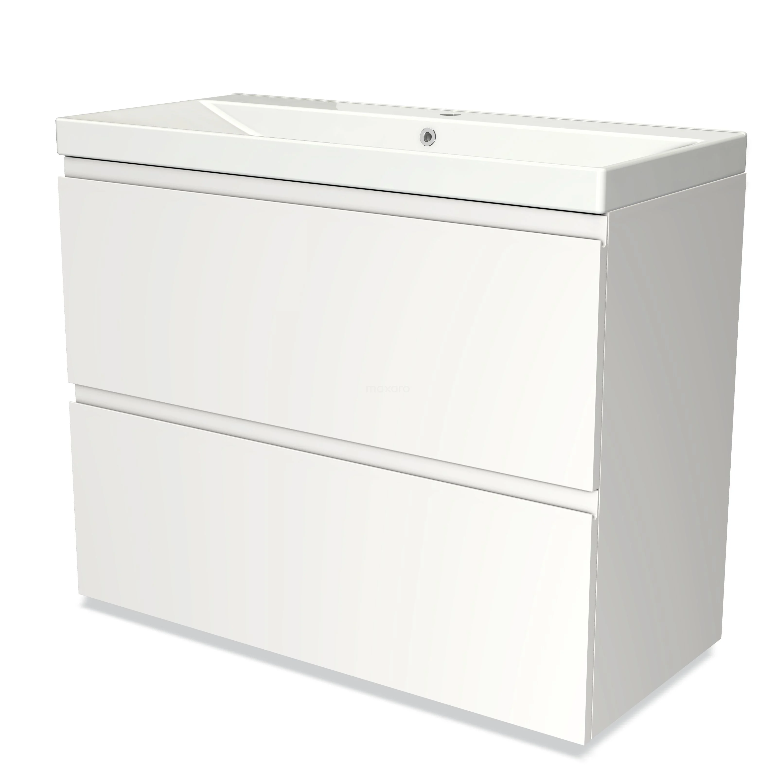 Modulo Bathroom furniture with sink | 100 cm Matte white Handle-less front Ceramic 2 stacked drawers under each other